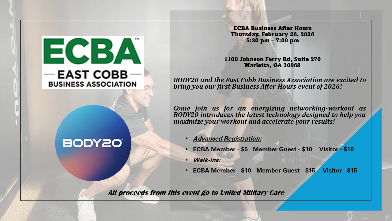 Body20 and the East Cobb Business Association are excited to bring you our first Business After Hours of 2026!